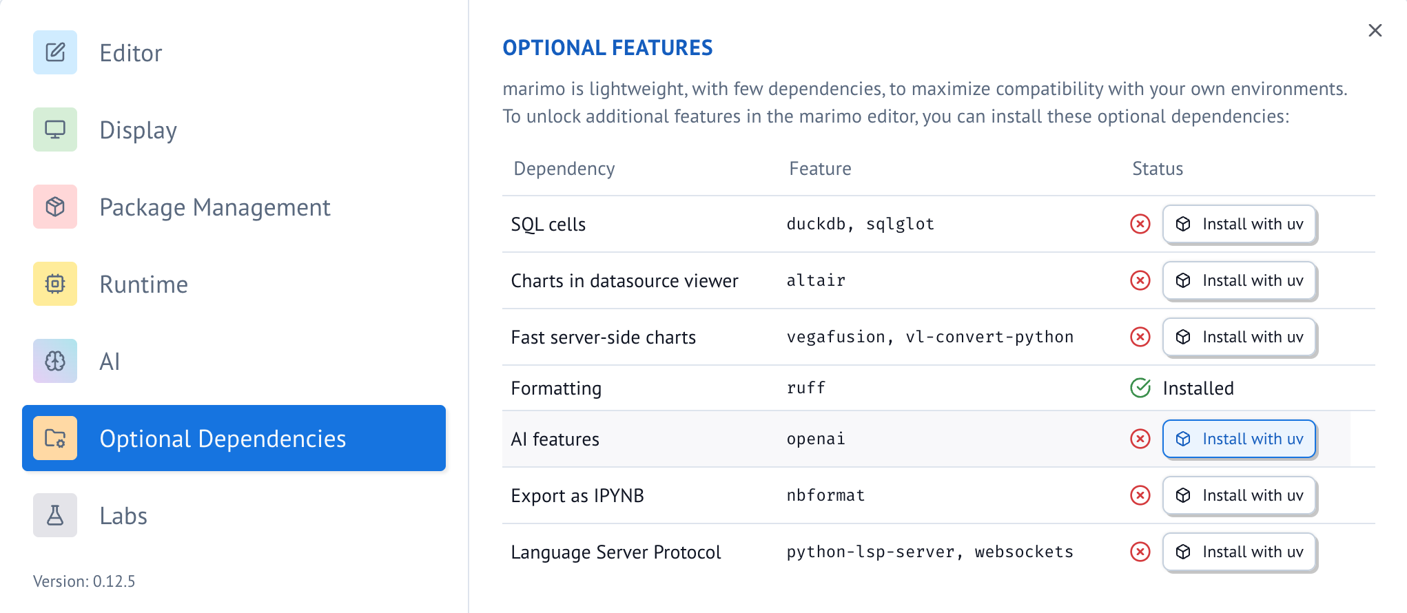 marimo also supports external AI agents like Claude Code and Gemini CLI that can interact with your notebooks. Learn more in the agents guide.